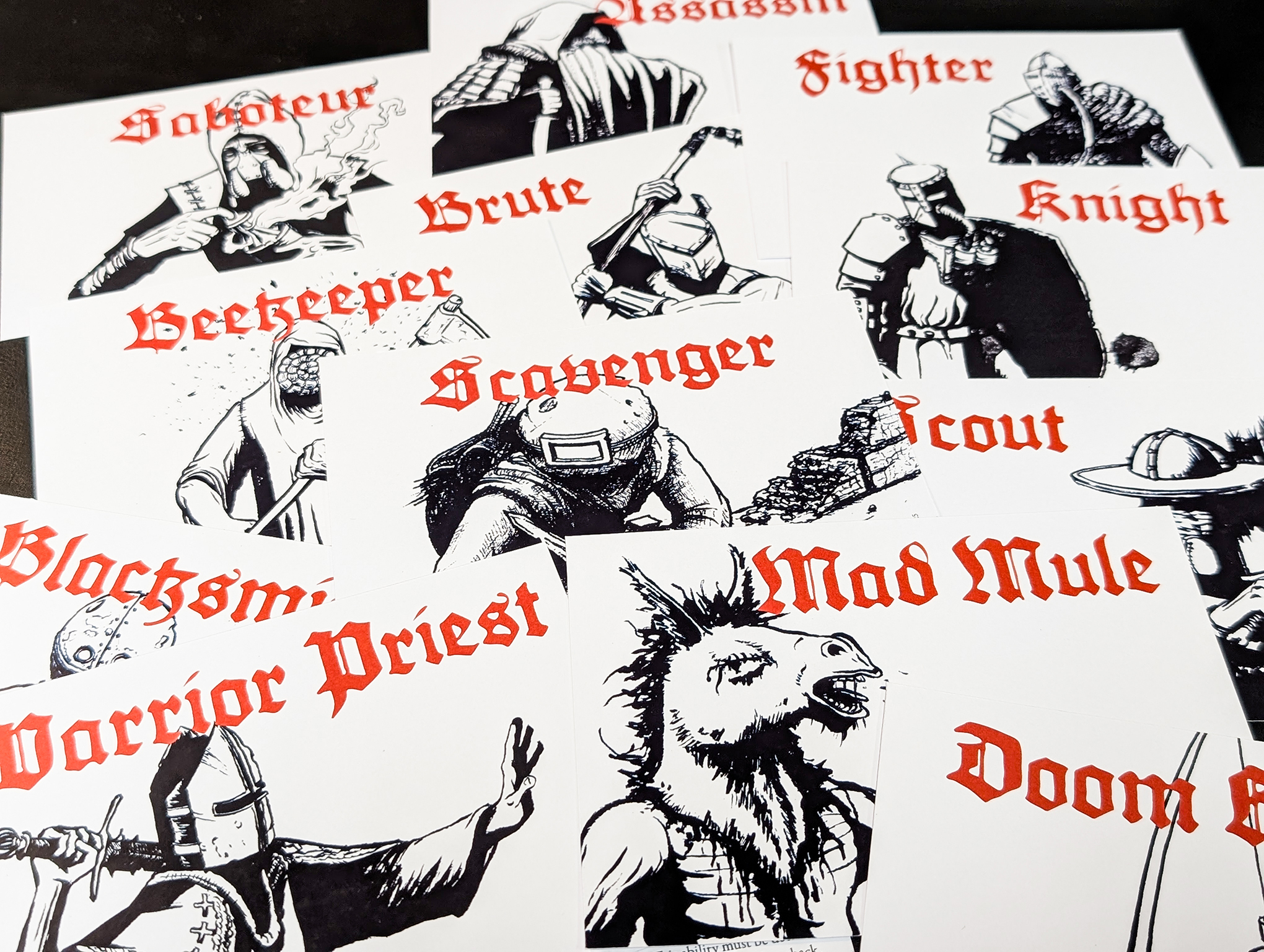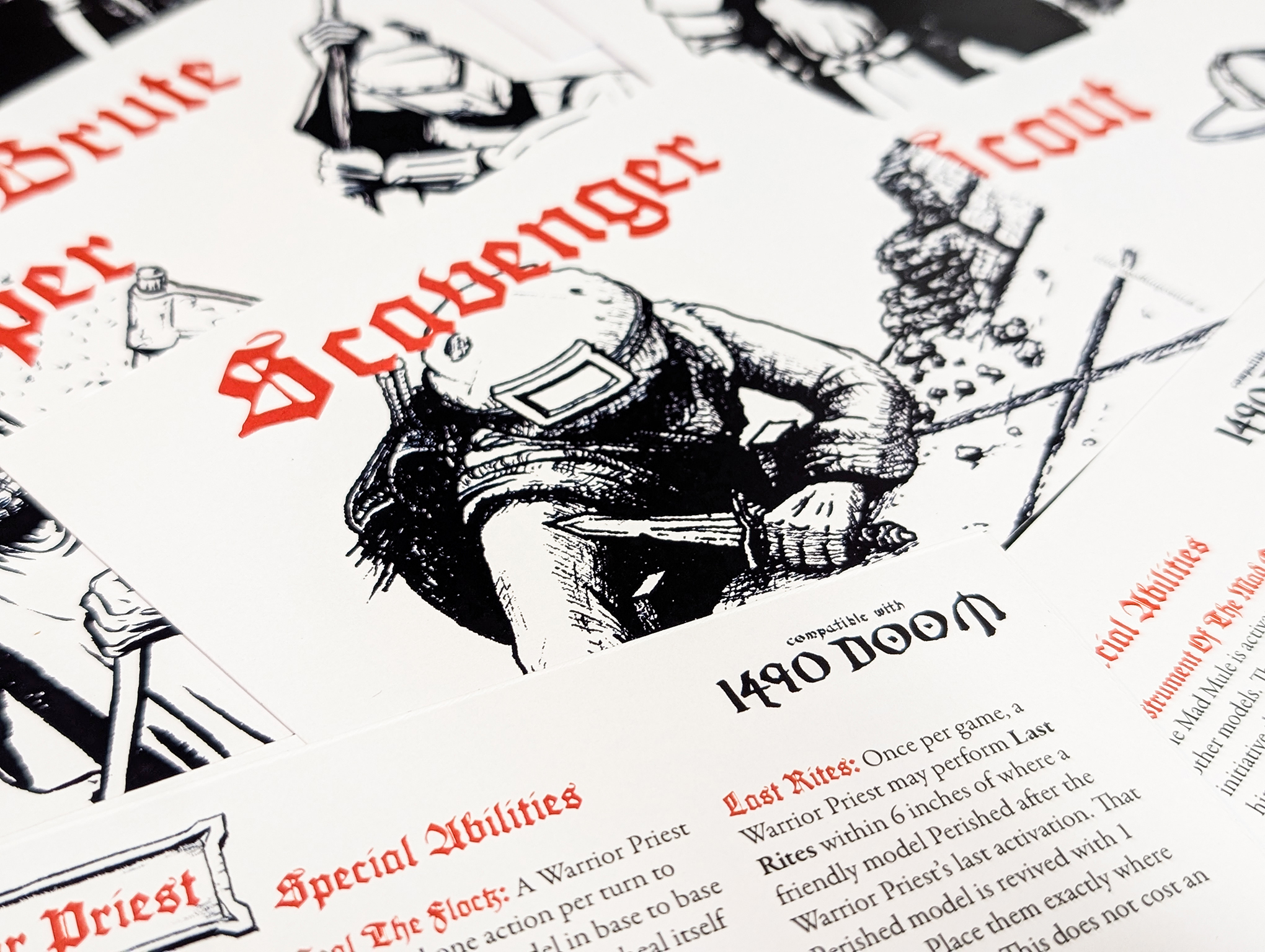 I created these Warrior Cards for the awesome game 1490 Doom by Buers Games.